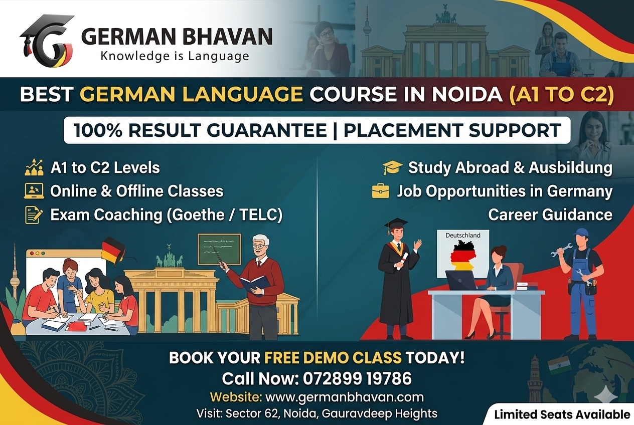 If you are looking for the best German language course in Noida, your search ends here. At German Bhavan, we provide structured training from A1 to C2 levels with a strong focus on 100% result and placement support. Whether your goal is higher education, Ausbildung, or job opportunities in Germany, our expert trainers guide you at every step.