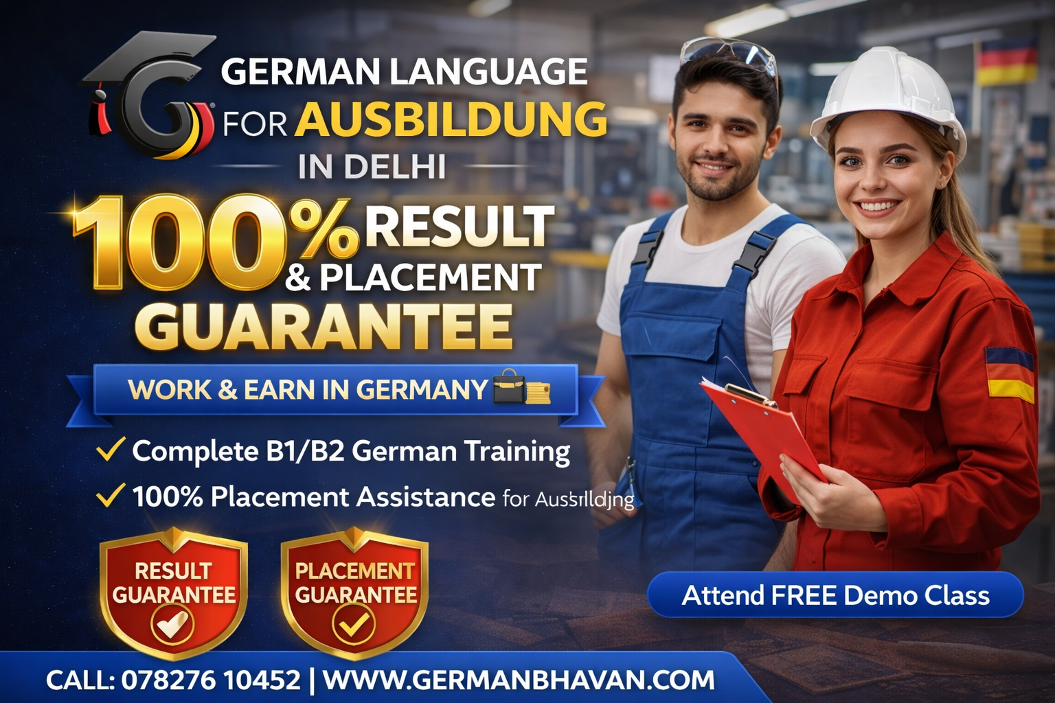 If your goal is to work and settle in Germany through Ausbildung, choosing the right institute is crucial. With a 100% result guarantee and complete placement support, German Bhavan offers one of the best German language courses for Ausbildung in Delhi.