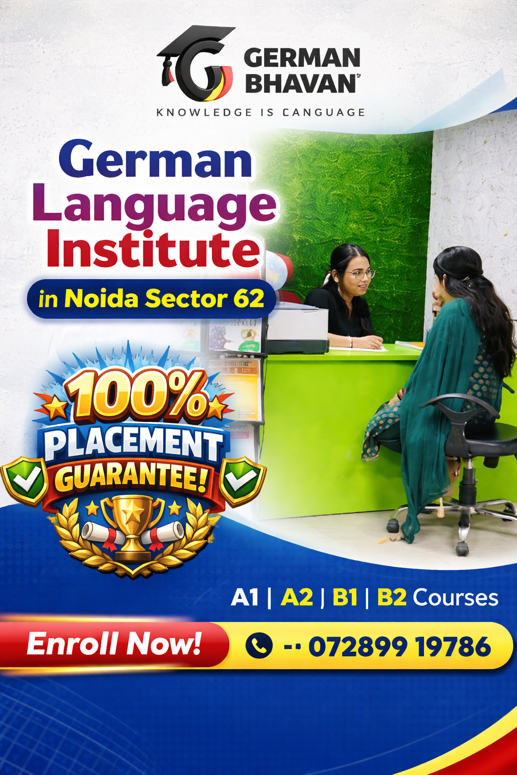 Join the best German language institute in Noida Sector 62 with 100% placement support and take the first step toward Germany.