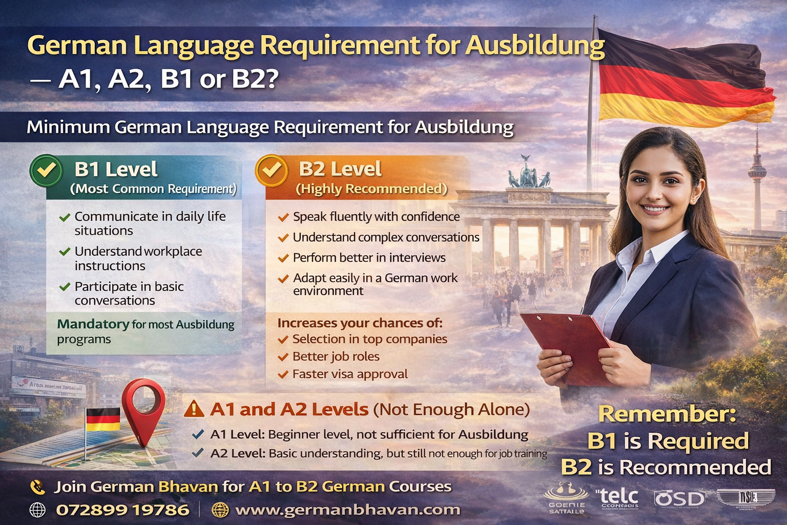 If you are planning to apply for Ausbildung in Germany, one of the most important requirements is your German language level. Many students often ask: Which level is required for Ausbildung – A1, A2, B1, or B2?
