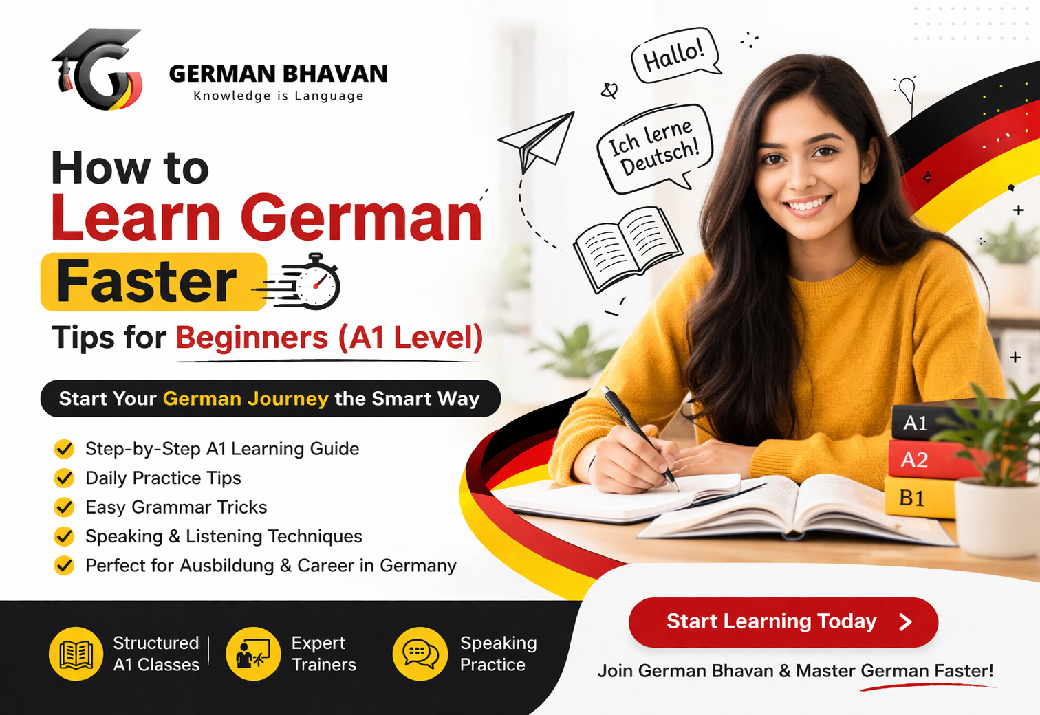 How to Learn German Faster: Tips for Beginners (A1 Level) | German Bhavan
